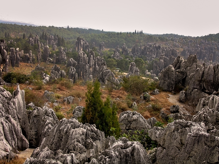 Położona w poudniowo-zachodniej części kraju prowincja Yunnan słynie z różnorodnych, zapierających dech w piersiach krajobrazów, a jedną z jej największych atrakcji jest Shilin, Kamienny Las. Jest on jednym z najciekawszych na Ziemi przykładów krasu kopiastego/wieżowego, którego specyfiką są pojedyncze ostańce i twardzielce wapienne, wyglądające jak odizolowane wieże czy kopce.
