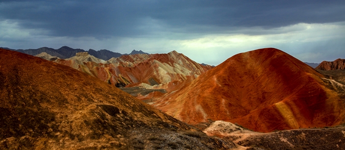 Położony w północno-zachodnich Chinach Park Geologiczny Zhangye Danxia jest z pewnością jednym z najbardziej niesamowitych miejsc nie tylko w Chinach ale i na całym świecie. Znany również jako Tęczowe Góry, słynie on z różnokolorowych warstw piaskowca, tworzących ostre i wysokie nieraz na setki metrów ściany skalne i ostańce o nietypowych kształtach, uformowane przez trwającą 24 miliony lat erozję piaskowców oraz innych skał, z których zbudowane są pogórza.